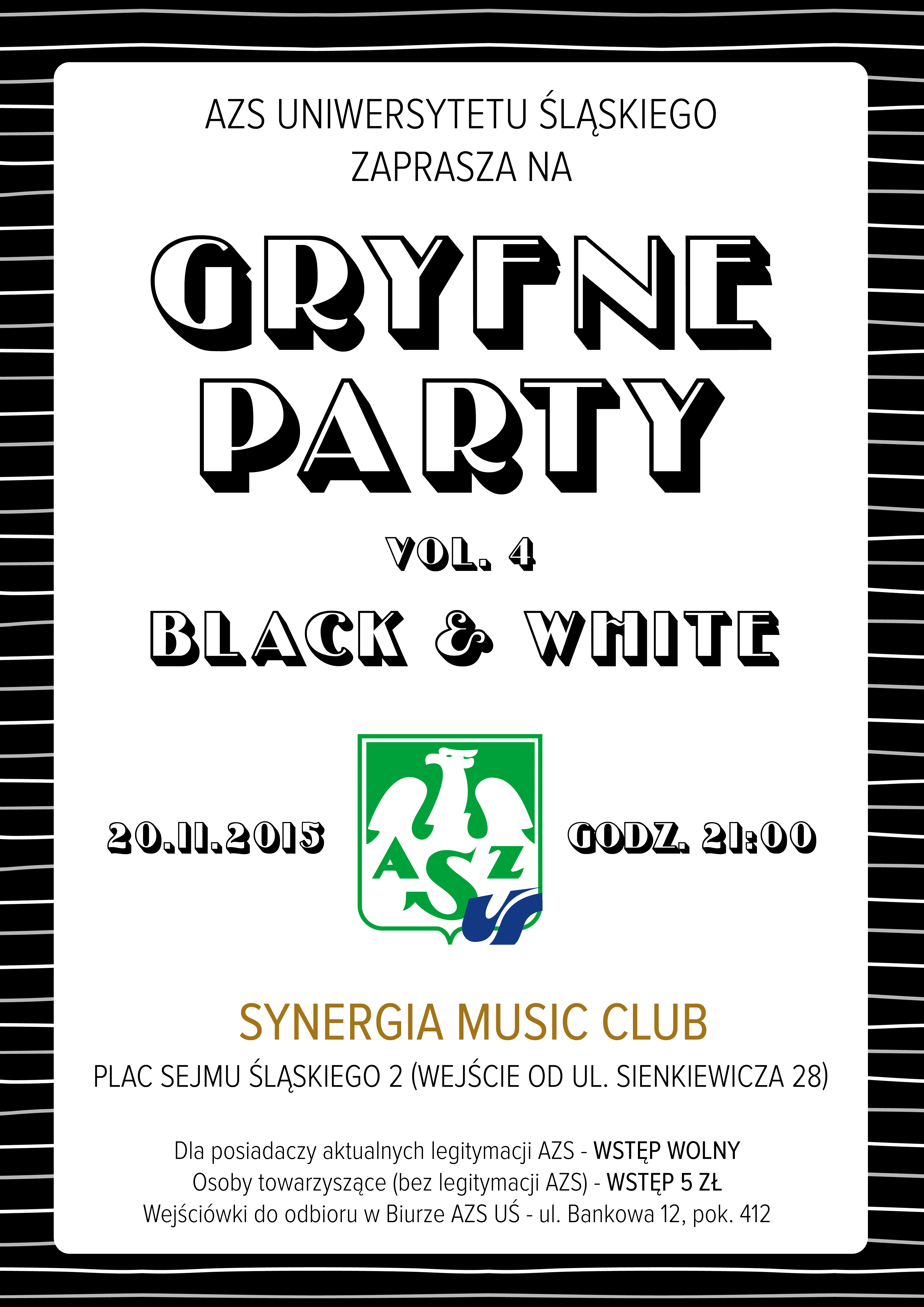 Tym razem bawimy się w Klubie Synergia przy Placu Sejmu Śląskiego 2, 20 listopada od godziny 21:00!