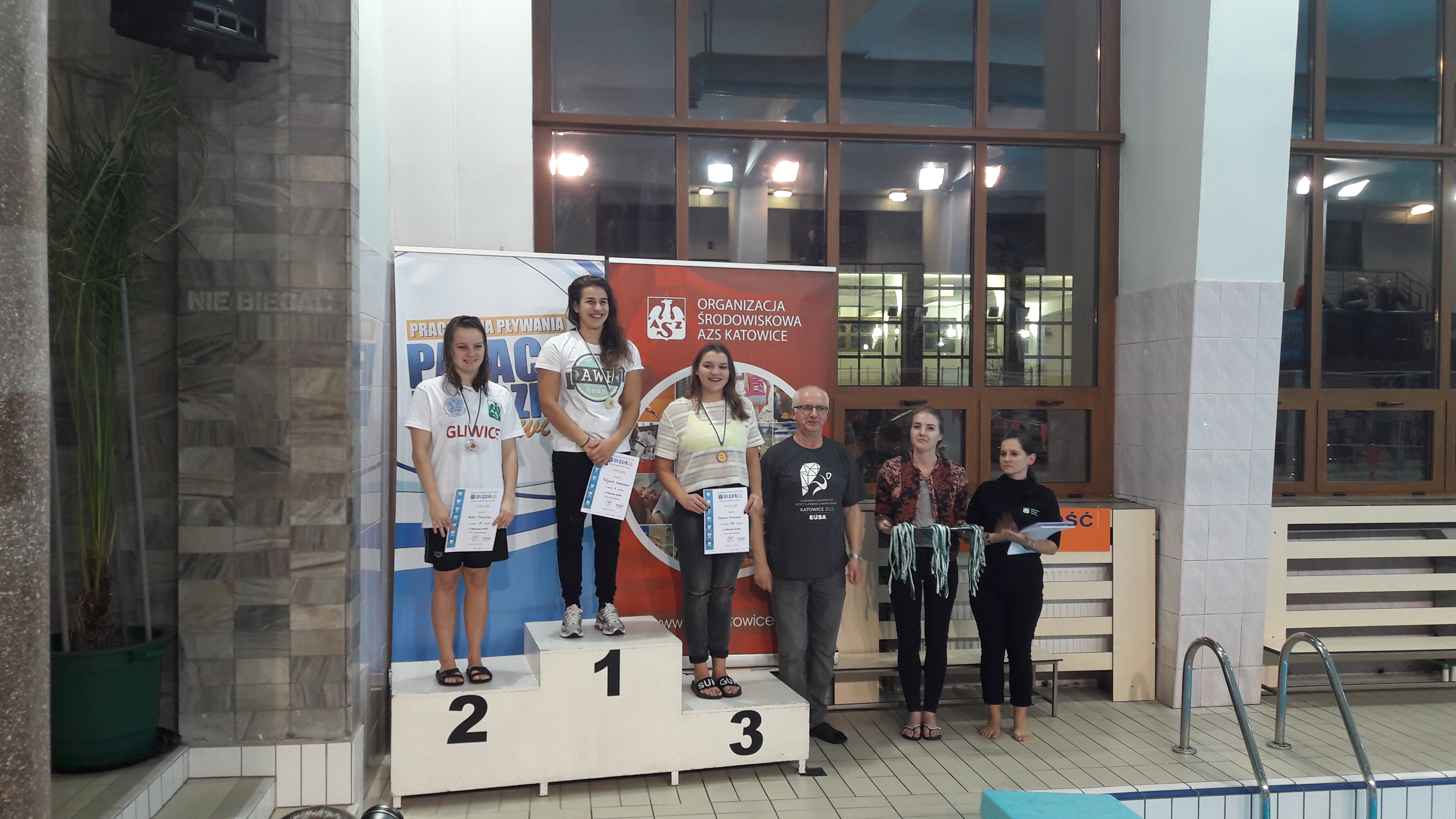 Uniwersytet Śląski reprezentowało łącznie 5 osób. Dwa złote medale zdobył Dawid Nowodworski w konkurencjach 50 metrów stylem dowolnym i 50 metrów stylem motylkowym. Brązowy medal na dystansie 50 metrów stylem dowolnym wywalczyła Zuzanna Olszewska. Pozostali zawodnicy czyli Jagoda Strońska, Natalia Kożuch i Paweł Garbuliński zakończyli zmagania z nowymi rekordami życiowymi.