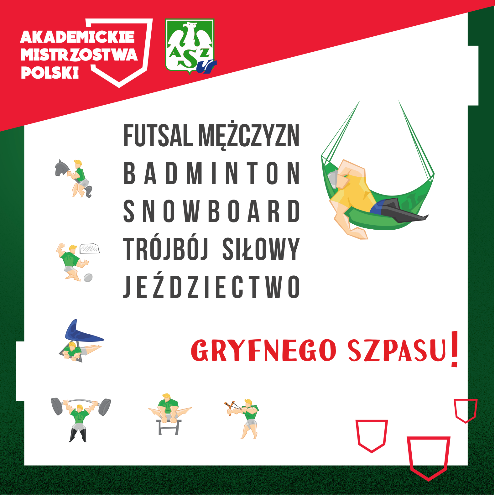 Każdy może wziąć udział w AMP-ach - jako zawodnik, wolontariusz, kibic. W tym roku mamy przyjemność organizować mistrzostwa w futsalu, badmintonie, snowboardzie, trójboju siłowym oraz jeździectwie.
