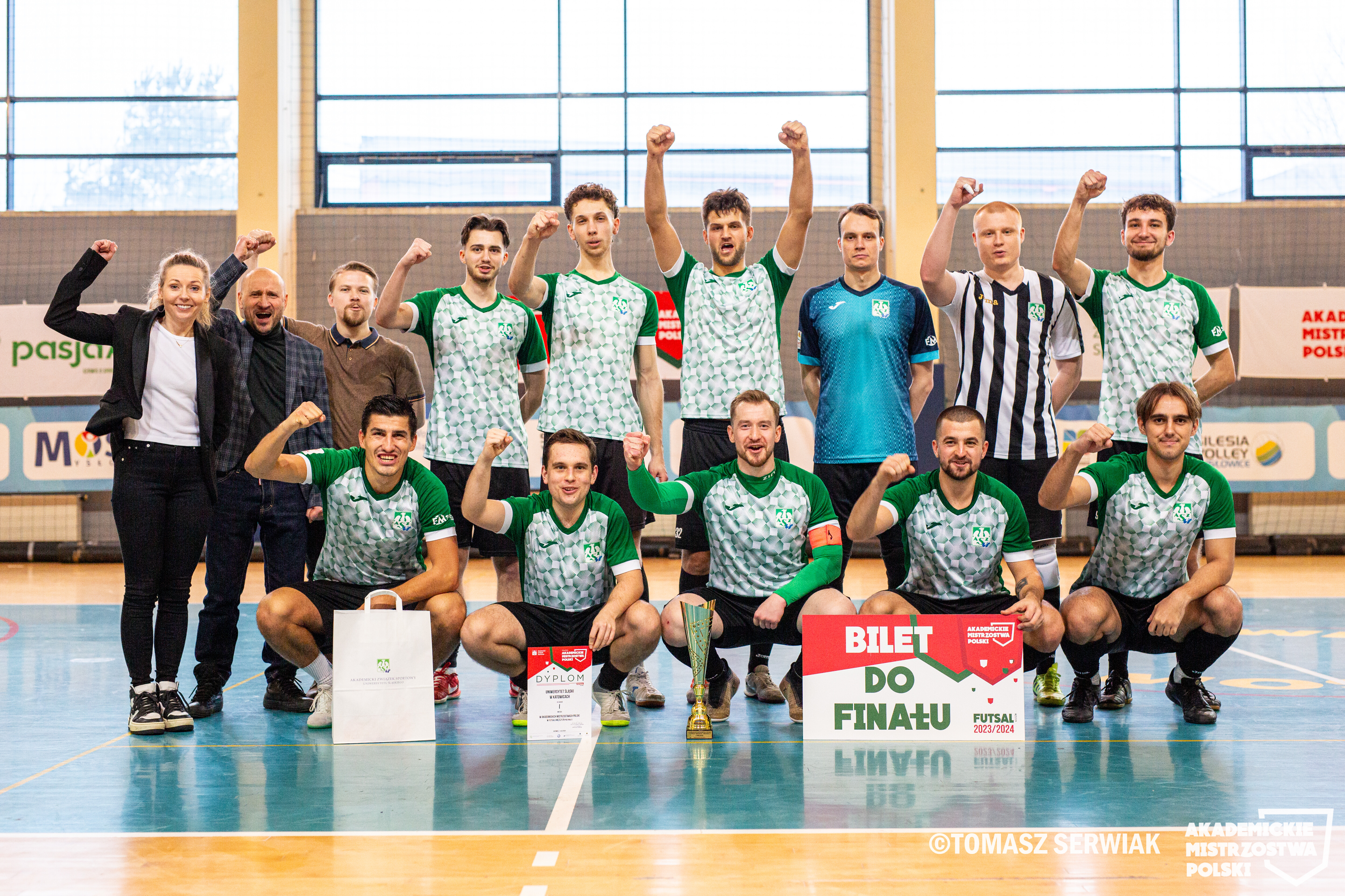 Zwycięzcą całego turnieju została drużyna AZS Uniwersytetu Śląskiego. Nieustępliwość, determinacja i umiejętności naszych zawodników doprowadziły ich do zaszczytnego tytułu mistrza Akademickich Mistrzostw Polski w futsalu, Półfinał D. Ale to nie koniec ich sportowej podróży – zdobywając złoto, drużyna AZS UŚ uzyskała również awans do finałowego turnieju AMP w Futsalu Mężczyzn.