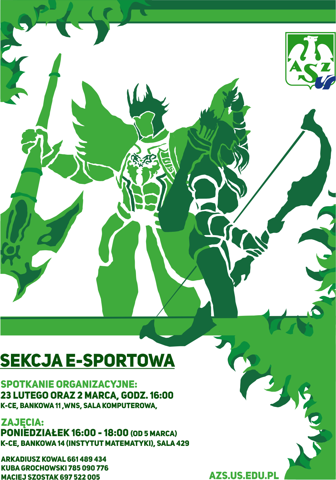 Zajęcia realizowane we współpracy ze Stowarzyszeniem Sportów Elektronicznych. Tegoroczne zajęcia będą bazować na dyscyplinie League of Legends. Traktujemy sport elektroniczny jako sport, dlatego prócz zajęć praktycznych z gry (instruktorzy SSE), wspólnie poćwiczymy na sali gimnastycznej!